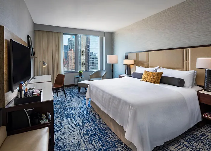 Located near major landmarks, guests can easily explore attractions such as Times Square, the Museum of Modern Art, and Central Park, all within walking distance. Public transport options include subway stations and bus stops nearby for convenient travel around the city.