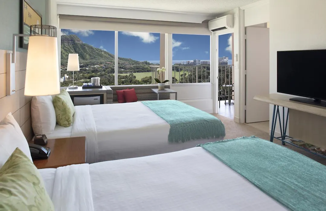 Queen Kapiolani Hotel offers unobstructed views of Diamond Head and features a retro-chic design with modern amenities. This 4-star Honolulu hotel includes a pool, fitness center, and pet-friendly accommodations. It is located adjacent to Kapiolani Park and within walking distance to the beach.